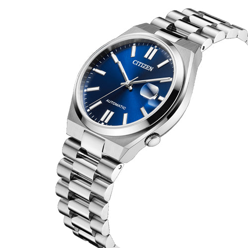 The “TSUYOSA” NJ0150-81L Automatic from series NJ015 adds ultra-modern sports design directly to your wrist. The multifunctional 40 mm watch is characterized by its stylish design with a silver-coloured stainless steel case and a smooth integrated matching strap. Under an anti-reflective sapphire glass, the sporty watch has a blue dial with a date window at 3 o'clock and contrasting silver-colored details that highlight its classic aesthetic. Powered by an automatic movement and water-resistant to 50 meters, this stylish watch is suitable for everyday use at work, free time and everything in between. Caliber 8210.