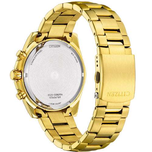 Elevate your wristwear with the Citizen AN8232-53A Men’s Quartz Chronograph Watch, a perfect fusion of timeless design and modern functionality. Featuring a sophisticated silver-tone dial complemented by elegant gold-tone hands and markers, this watch delivers a luxurious two-tone aesthetic that effortlessly transitions from formal events to everyday wear. Powered by precise quartz chronograph movement, it offers accurate timekeeping alongside stopwatch functionality to keep you on track throughout the day. The watch includes a practical date display at the 4 o’clock position and luminous hands for enhanced visibility in low-light conditions. Crafted with a gold-tone stainless steel case and bracelet, the AN8232-53A combines durability with a refined finish. Its 100-meter water resistance rating ensures it can handle swimming and daily water exposure with ease, making it a reliable companion for all occasions. Discover the perfect blend of elegance and performance with the Citizen AN8232-53A — designed for the modern gentleman who values style and substance.