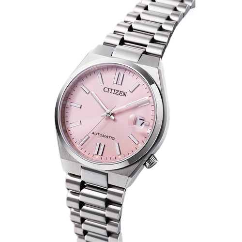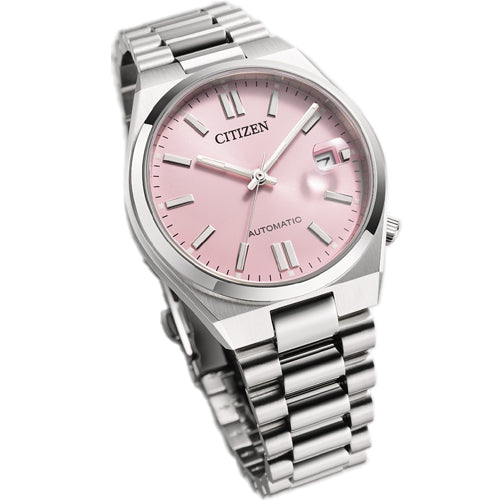 The CITIZEN TSUYOSA NJ0200-50Z features a soft and soothing Pastel Pink dial, offering a warm and calming aesthetic that’s perfect for adding a touch of elegance to any outfit. This 37mm timepiece combines timeless design with modern functionality, featuring a stainless steel case, sapphire glass, and luminous hands and indices for easy readability. Powered by the reliable Caliber 8210 automatic movement, it offers a 42-hour power reserve and is water-resistant to 5 BAR, making it a versatile and durable choice for everyday wear. With its sleek, chamfered case and smooth bracelet, the NJ0200-50Z is the perfect watch for those seeking a stylish and practical timepiece that effortlessly complements any look.