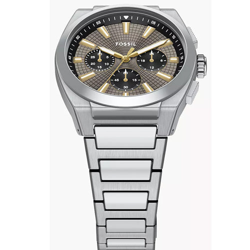 Exuding effortless style, the Everett Chronograph. This sporty, stainless watch balances casual cool with refined sophistication. The sunray grey dial, encased in a 44 mm round stainless steel case, lends a touch of modern inspiration. Functional details like Japanese chronograph quartz movement and a solid steel bracelet ensure this versatile timepiece keeps you on schedule. Slip on this iconic accessory and take on whatever comes your way.