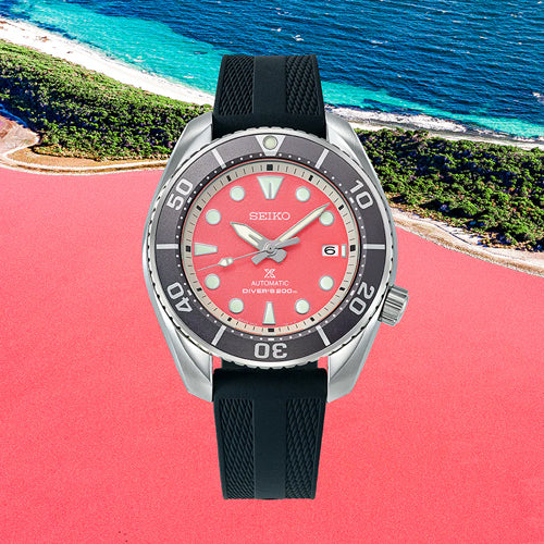 A tribute to Australia’s Pink Lake. The bold pink dial pays homage to this natural wonder, offering a striking and distinctive expression of nature's vibrant palette. Caliber 6R35 automatic movement (approx. 70-hour power reserve), Sapphire crystal glass, 200 m water resistance, Straight-shaped silicone strap for enhanced comfort and modern appeal, LIMITED EDITION and serial number on the case back, Presented in a specially designed box based on the theme of the the wonders of nature.