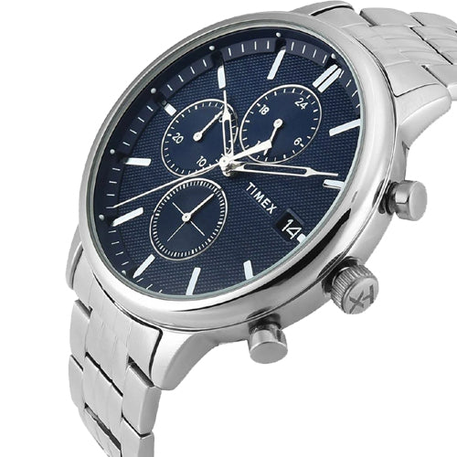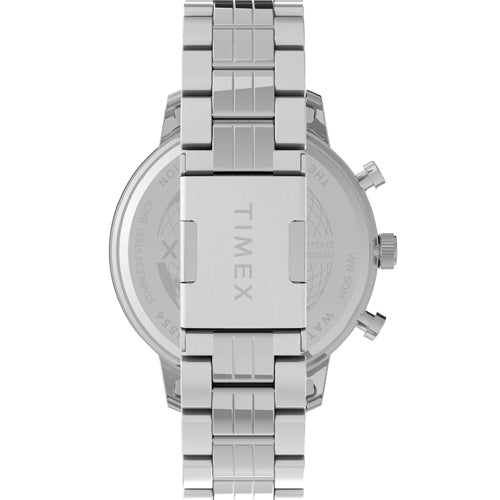 Inspired by the character-rich architectural language of Chicago, from its modern skyscrapers to its historic cityscape, this watch is both bold and refined with sophisticated dial and sub-dial textures, hand applied indices and a substantial stainless-steel bracelet. And thanks to the fully-functional chronograph and date display, you won't be short on practical features for wherever your day might take you.