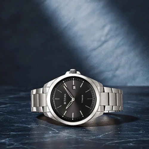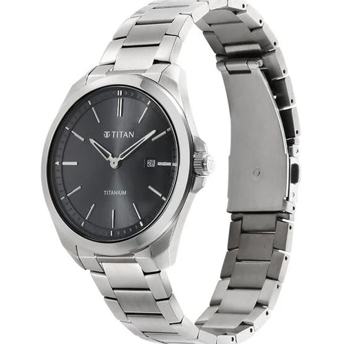 Titan Titanium Quartz Analog Black Dial Titanium Strap Watch for Men 32mm 90177TM03