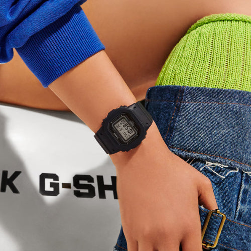 Introducing the iconic 5600 line of G-SHOCK watches, now in a slim, compact size that is so easy to wear. Glass vapor deposition creates a metallic face that’s aglow with individuality, accented with metal side buttons and buckle for a sophisticated, special look.