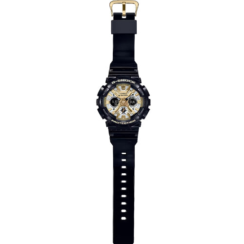 Enjoy the iconic oversized GA-110 with a watch face designed for depth and dimension and numerous fine components, all in a timepiece with a smaller profile.A two-tone color scheme of shining gold and stylish silver accents the classic black G-SHOCK body. In a more compact design for the perfect casual fashion accessory for younger G-SHOCK fans.