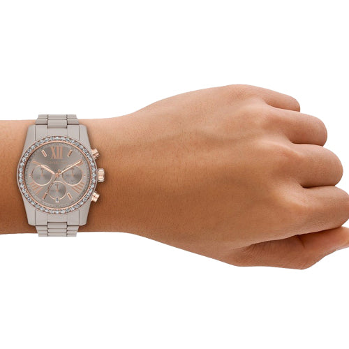 A timeless icon with a bold new twist, the Lexington Lux watch returns for Holiday in high-shine ceramic. Featuring a larger 38mm case and glitz topring, this updated design brings modern edge to the classic chronograph. The mink case and bracelet is accented with rose gold-tone details and a tonal dial—delivering luxe texture and standout sophistication for the season.