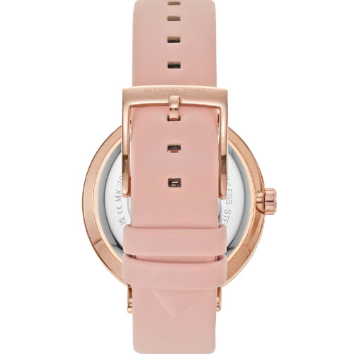 The Michael Kors logo takes center stage backed in pavé on this 40mm watch. With a rose gold-tone case and blush leather strap, this piece is perfect for everyday wear with just the right touch of sparkle.