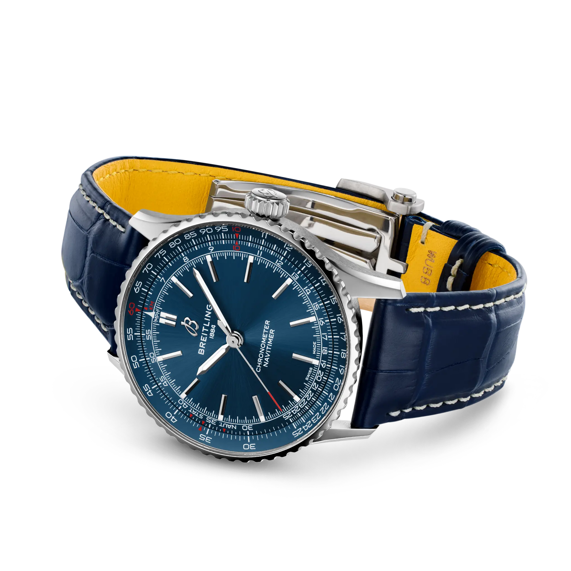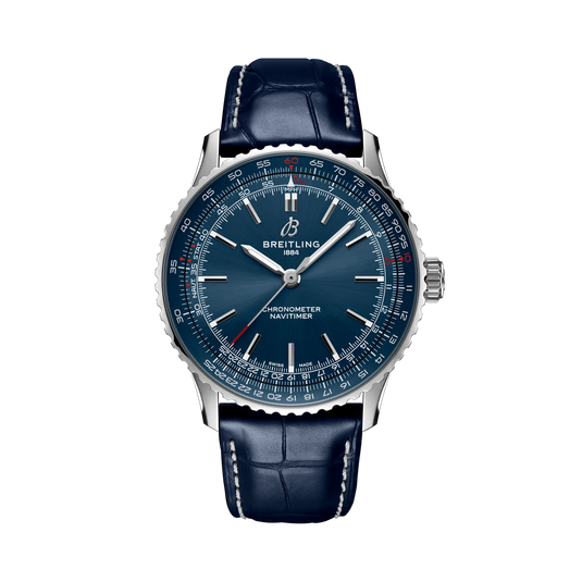 Breitling’s most versatile Navitimer—for the journey. The Navitimer is one of the most recognizable watches ever made. It’s on collectors’ lists of the greatest watches of all time. What began in 1952 as a tool for pilots has gone on to mean something profound to every single person who has had this timepiece along on their personal journey. The Navitimer Automatic and Automatic GMT 41 distill the iconic look, omitting the chronograph yet preserving a balanced dial composition. The central placement of the 24-hour scale on the GMT and the Automatic’s clean face, ensure the intricate slide rule stands out while streamlining the overall aesthetics. Further refining the collection, the notched bezel was incorporated for a contemporary touch, and alternating polished and brushed finishes add a dynamic play of light. Straps in alligator leather and bracelets with a seamless butterfly clasp offer comfort and convenience. The palette includes colorful dials, encased in a choice of stainless steel or 18 k red gold. This reinvention of the Navitimer, marrying the classic with the contemporary, is tailored for enthusiasts and the style-conscious alike, promising Breitling’s commitment to heritage and innovation in each timepiece.