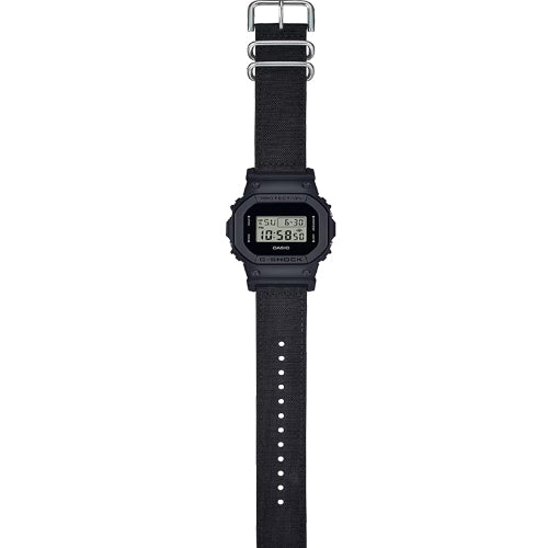 Street-smart utilitarian and nature-minded at the same time — this G-SHOCK with Cordura nylon band checks all the boxes.The fashionable all-black design is complemented by a band made of environmentally-friendly Cordura nylon, creating a cool, versatile look that takes you seamlessly from work to play.Choose from three models: the iconic DW-5600, the GA-2100 with octagonal bezel, or the large case GA-700.
