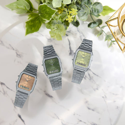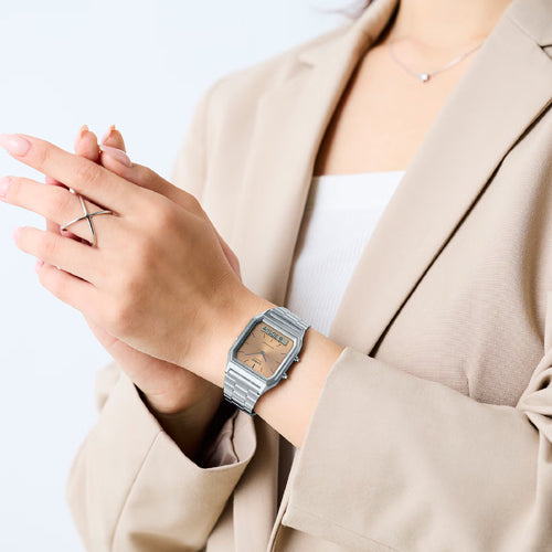 The classic analog-digital combination dressed up in beautiful hues. Featuring a sunray dial for a colorfully elegant twist on a time-honoured design. Water resistance for daily use and handy features like stopwatch, alarm, and more.