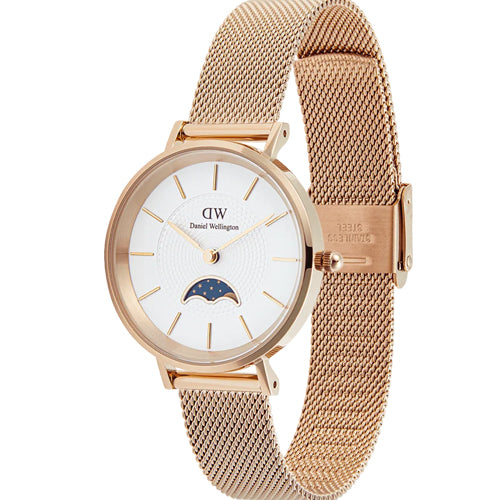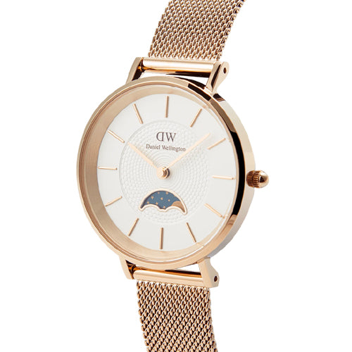 Stay in tune with the moon’s cycles. Petite Lune features a unique moon-phase sub-dial, which keeps track of where we are in the month, spinning from new to full moon and back again. The rose gold mesh strap is interchangeable, so it can match your style day or night—under the sun or the stars.