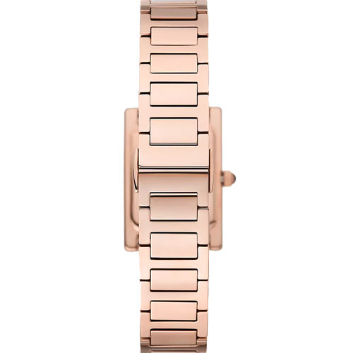 This 22mm x 32mm watch features a dark green glossy dial, two-hand movement and rose gold-tone stainless steel bracelet