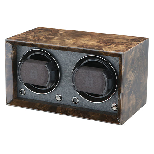 Paul Design, Wooden watch winder for 2 watches with high-gloss lacquering and glass door for secure storage, Sophisticated technology, Easy to use via push button, Chrome plated metal ring, Watch holder in PU leather, Interior: black velour,