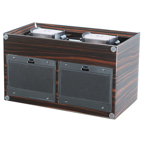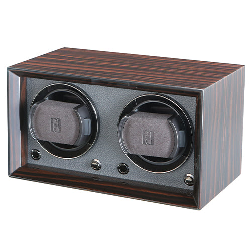 Paul Design, Wooden watch winder for 2 watches with high-gloss lacquering and glass door for secure storage, Sophisticated technology, Easy to use via push button, Chrome plated metal ring, Watch holder in PU leather, Interior: black velour,