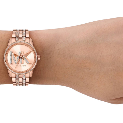 Our Bryant watch is the epitome of gilded glamour. Sparkling MK initials take center stage on the face of this mini timepiece, while pavé accents encrust the topring and bracelet strap. Add it to a glistening wrist stack for an instant “wow” factor.