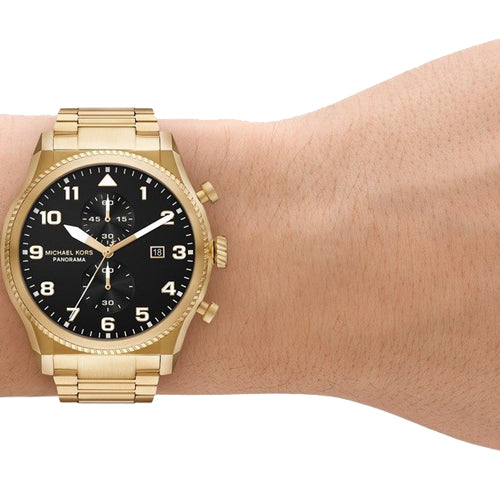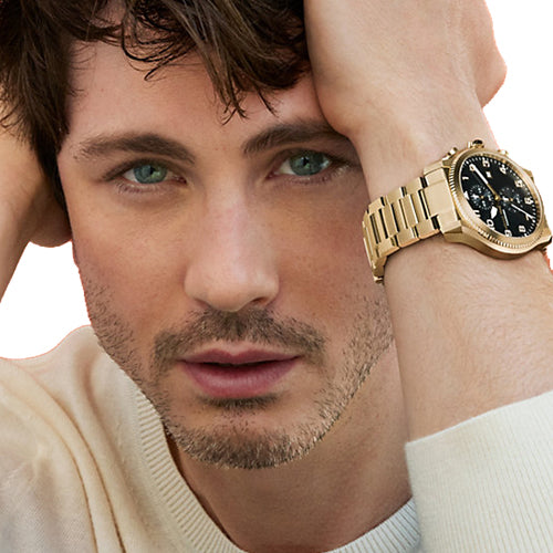 A refined piece for years to come, our Panorama watch is designed with a gold-tone stainless steel beveled strap and topring that’s contrasted by a black-tone face featuring chronograph dials. Count on it for a sophisticated, sporty look any day of the week.