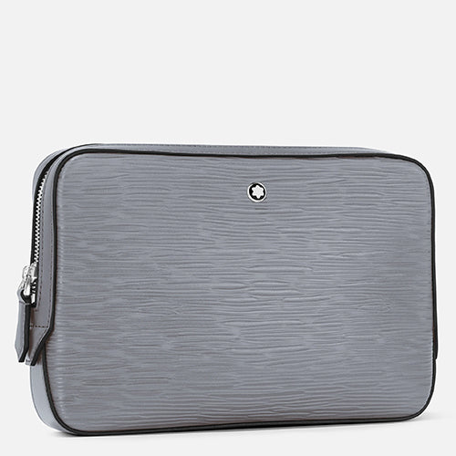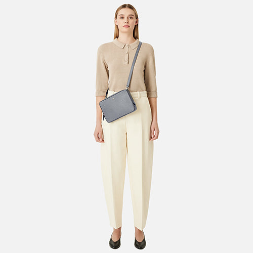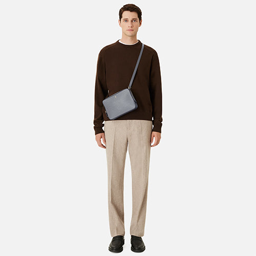 With its refined steel hue, bark tree motif and contemporary shape, this mini messenger bag has been designed with modular function in mind. Compact and lightweight, the main compartment comfortably holds a large cell phone, while there’s a zipped pocket and an additional slip pocket inside. Wear it with the detachable leather shoulder strap, carry it as a clutch, or attach it to larger bags using the band on the back.