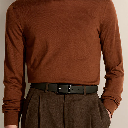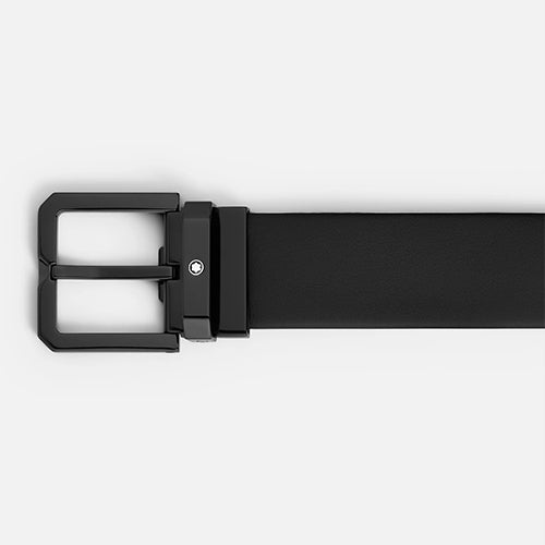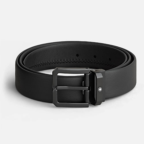Elevating both business silhouettes and a modern styles, the belt features a 3.5 cm x 120 cm strap in black plain leather combined with a rectangular steel pin with a black PVD tubolar finishing.