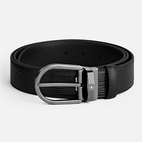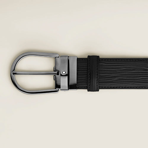 Mont Blanc, Horseshoe Buckle Black 35 mm Leather Belt