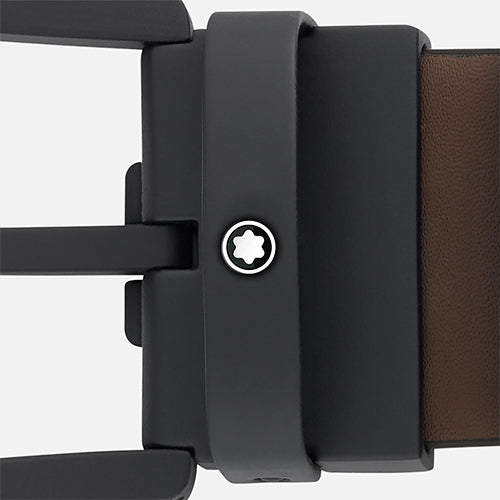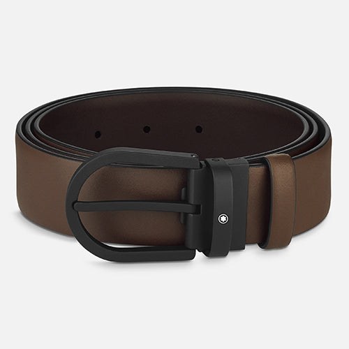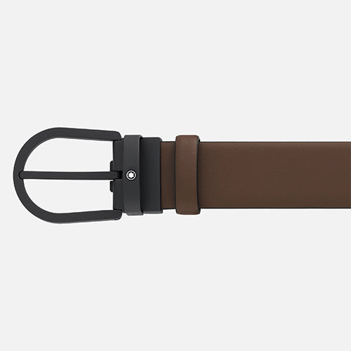 Horseshoe black rubberized finish pin buckle. Self-adjustable, 3.5 cm x 120 cm, strap in brown plain leather. Conceived for a casual look.