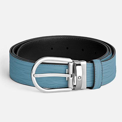 Mont Blanc, Horseshoe Buckle Smoky Blue 35 mm Leather Belt