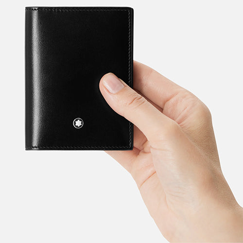 Discover the Meisterstück card holder 4cc, with its compact and timeless shape. Crafted from deep-shine black leather, this accessory exudes elegance. The exterior boasts a convenient credit card slot, allowing for easy access to your frequently used card. Inside, you'll find three additional credit card slots, along with a dedicated compartment for business cards. The card holder also includes an extra pocket, providing versatile storage for receipts or other essentials. Despite its small and compact design, it offers ample space to keep your essentials organized in style. Elevate your everyday transactions.