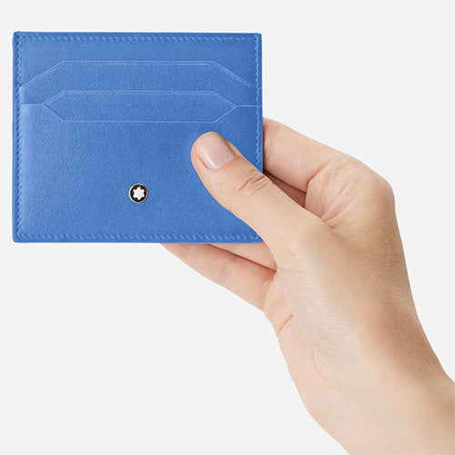 Introducing the Meisterstück card holder 6cc, a compact and timeless accessory. Crafted from deep-shine leather in dusty blue tones, this piece combines functionality with style. Inside, you'll find six credit card slots and an additional pocket for receipts or essentials, offering ample storage. Stay organized and elevate your everyday transactions with this card holder