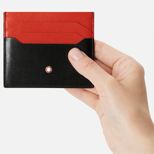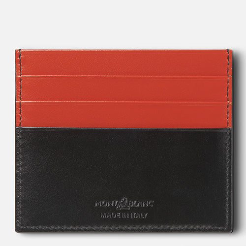 Introducing the Meisterstück card holder 6cc, a stylish and functional accessory from the capsule collection celebrating 100 Years of Meisterstück craftsmanship. This card holder features a unique design with a half black and half coral leather construction, inspired by the original colors of our Meisterstück. Adorned with a coral emblem, it adds a touch of elegance to your essentials. With space for six credit cards and a small pocket in the middle, it offers convenient storage while maintaining a compact size.