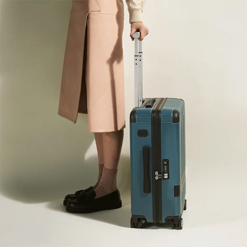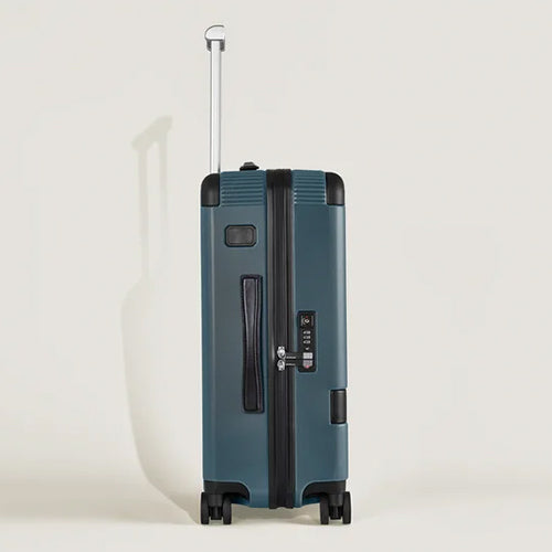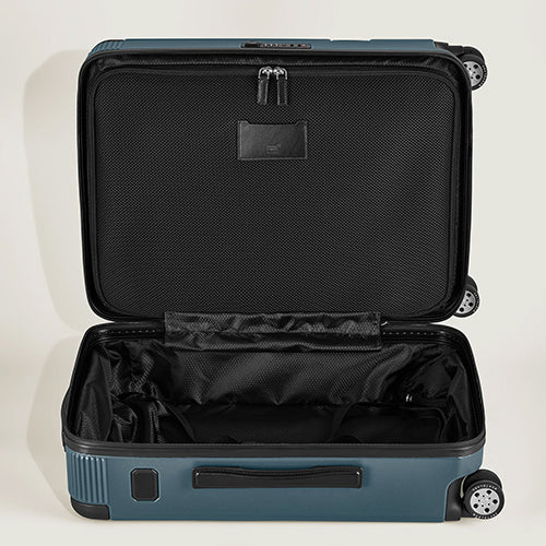 Find your travel companion in the #MY4810 collection. This user-friendly cabin trolley, crafted from lightweight polycarbonate in elegant Avio blue colour and accented with a black leather trim, features a compact design complete with a four-wheel system, an adjustable bar, and intelligently organised compartments for your convenience. It stands at 38 x 55 x 23 cm with a capacity of 37 L, usually meeting the cabin luggage criteria. Keep in mind, though, that hand and cabin luggage restrictions can differ from one airline to another, so it’s recommended to confirm the specific regulations of your airline prior to your journey.