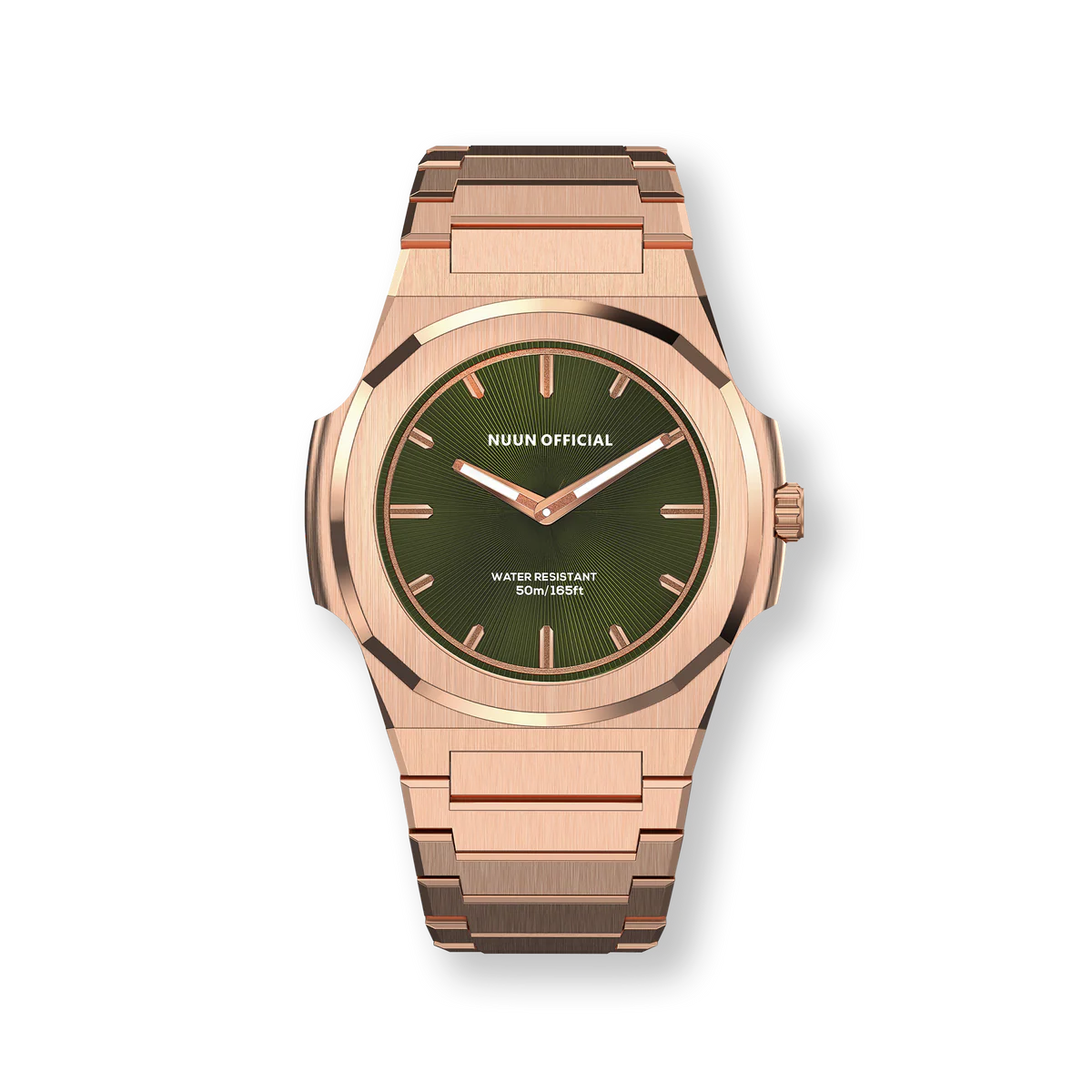 Nuun Official MS Rosegold Men Analogue Watch Green Dial With Gold Marker - MS Rosegold 38mm
