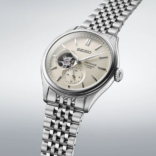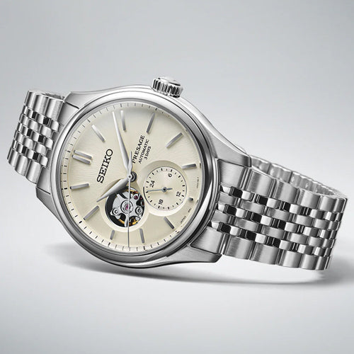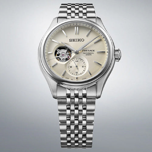 Seiko Presage, Seiko Presage Classic Series Shiro-iro Open heart Warm White Dial Stainless Steel Strap - SPB469J1
