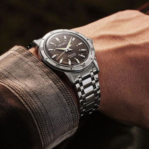 The new Seiko Presage "Style60's" series design takes its inspiration from the Crown Chronograph introduced in 1964. With contemporary earth tone colors, the watches combine the vintage design of the 1964 creation with contemporary elements to create a series with a retro feel perfect for modern times.