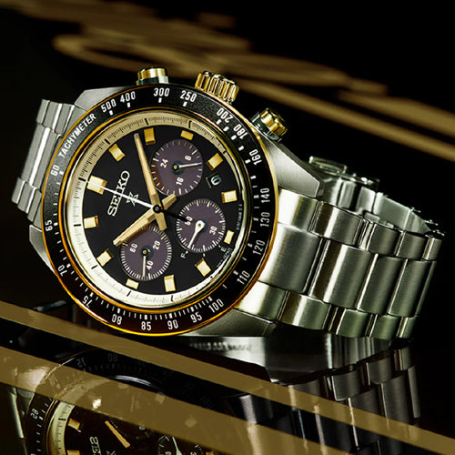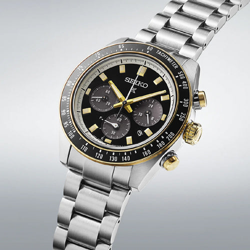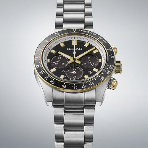 Introduced in 1969, the Seiko Speedtimer was a major milestone in chronograph innovation, and marked the beginning of an important decade of the Speedtimer in its prime. The 70s were famed for many things: fashion, music, but also motorsports. Designed under the theme of ‘Classic Motorsports’, the ‘Circuit Race’ Speedtimer is inspired by vintage circuit racing – when cars would rally with extraordinary speed and excitement. Encased in a black aluminium bezel with gold-coloured plating and a sapphire crystal glass, this chronograph features a black dial, with hour and minute hands that resemble the original Speedtimer from 1969. With 12 spots of Lumibrite, this timepiece is designed to be legible in darker conditions. With a chronograph second scale around the dial ring, this piece also features a Tachymeter on the bezel for measuring speed – an iconic element of the original Seiko Speedtimer. Featuring a solar-powered V192, this Speedtimer chronograph is accurate to +/- 15 seconds per month, whilst maintaining a full charge of 6 months. Prospex is a combination of the words ‘Professional’ and ‘Specifications.’ Seiko Prospex timepieces are designed to be practical, reliable and durable; to meet the high standards required in extreme environments for sports lovers and adventure seekers alike.