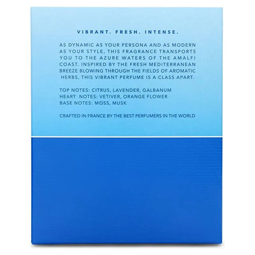 Vibrant. Fresh. Intense.As dynamic as your persona and as modern as your style, this fragrance transports you to the azure waters of the Amalfi Coast. Inspired by the fresh Mediterranean breeze blowing through the fields of aromatic herbs, this vibrant perfume is a class apart.Top Notes: Citrus, Lavender, Galbanum Heart Notes: Vetiver, Orange Flower Base Notes: Moss, Musk Crafted in France by the best perfumers in the world.